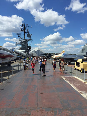Dann ging's los Richtung Intrepid, dem Flugzeugträger, der nun an einem Pier im Hudson liegt und als Museum genutzt wird. Die Intrepid war im 2. Weltkrieg im Einsatz und dann noch bis 1974... Ist