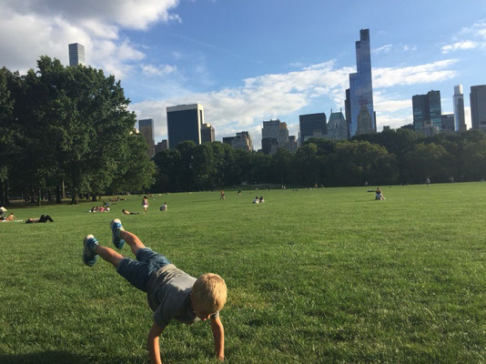 Dann ging's auf die Räder: einmal rund im Park, mit Pausen und weiteren Snacks. Das Highlight zum Abschluss: nochmal richtig reintreten und mitten auf dem (!) Broadway fahren. - O.k., waren nur