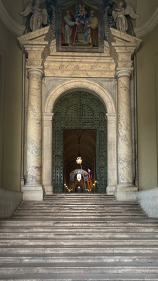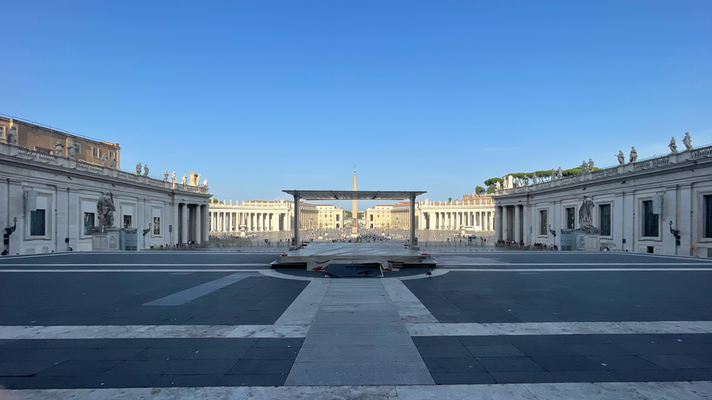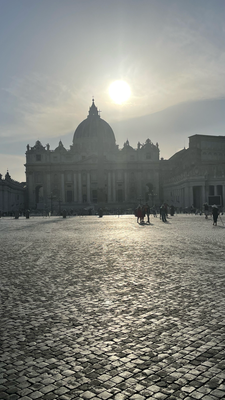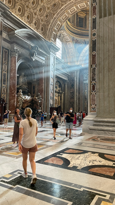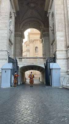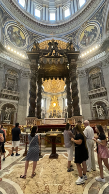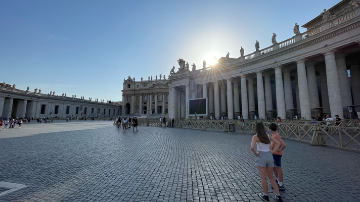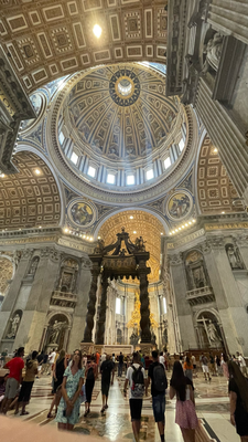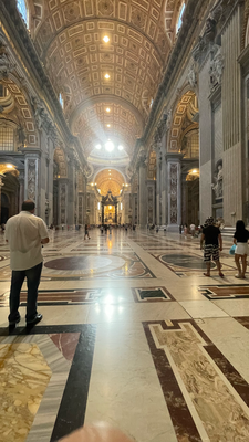 Nach einem kurzen Ankommen und Ausruhen ab in die Hitzeschlacht: Erst mal in den Vatikan gelaufen, staunten hier, wie monumental groß das alles ist - wie Vieles in Rom!!! Ohne Wartezeit direkt rein in den Petersdom. Louisa und Kiri hatten kurze Hosen an, diese mussten sie auf Anordnung der „Sittenwächter“ am Eingang etwas runterziehen :-) (also nicht so weit, aber eben so, dass mehr Bein bedeckt war).
