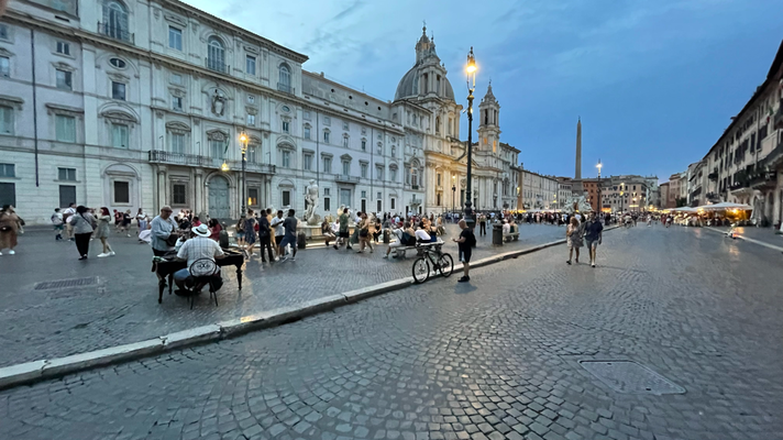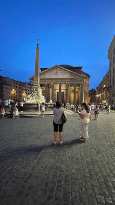 Weiter ging es zur Engelsburg und auf der Engelsbrücke über den Tiber. Juli wollte uns per iPhone leiten, Ziel war der Piazza Navona und das Pantheon, aber wir hatten Hunger und sehr viele enge, kleine Gassen machten die Navigation schwer. Also gab es erst mal wohlverdientes Abendessen am Campo de Fiori. Bisschen aufdringlich die Zurufer, die einen in ihr Lokal locken wollen, aber das gehört dort wohl dazu. Anschließend haben wir es doch noch zum wunderschönen Piazza Navona und zum Pantheon geschafft. Beeindruckende Atmosphäre …aber auch gut warm. Freuten uns dann auf Dusche und bisschen Klimaanlage in der Wohnung …
