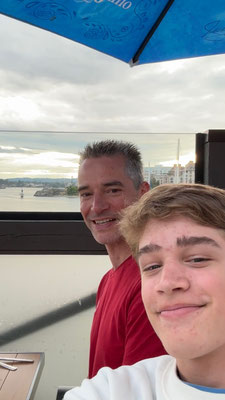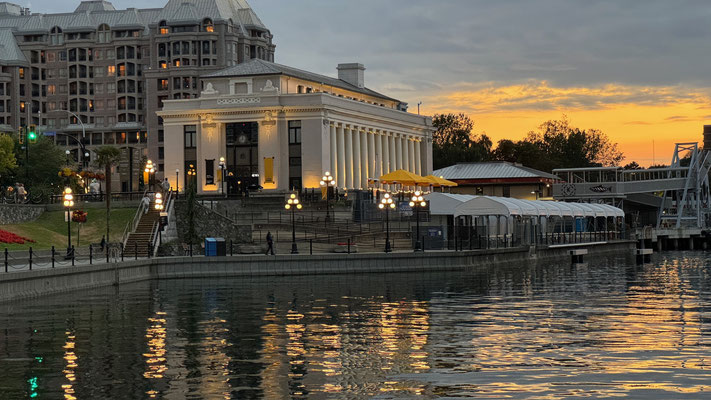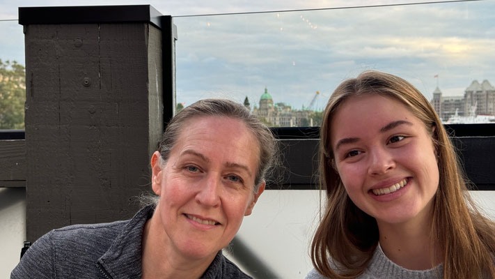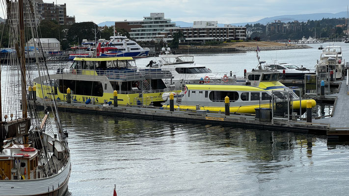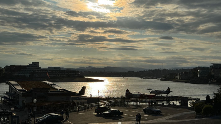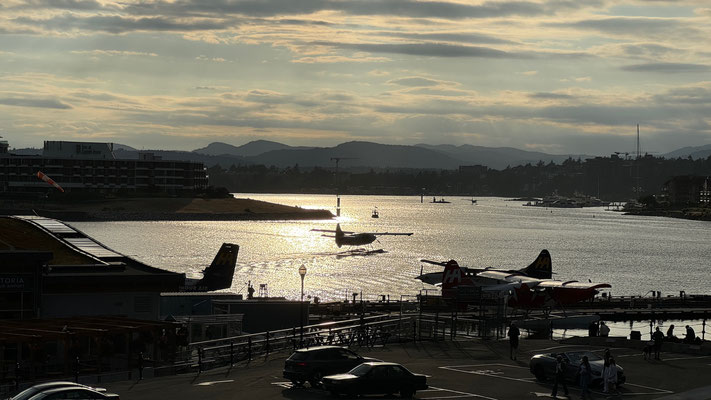 Nachdem wir beim Frühstück im Hotel einen Sitzplatz ergattert haben (der Bereich ist etwas klein geraten im Vergleich zur Anzahl der Zimmer), sind wir 30 min zum Butterfly Garden gefahren. Nu ja: Den fanden wir etwas klein und überteuert - und haben uns dann entschieden, den geplanten Besuch der Butchart Gardens (botanischer Garten) ausfallen zu lassen, trotz Euro-günstigen Wechselkurses wollten wir unser Geld dann lieber woanders ausgeben. Also auf dem Weg zurück zum Hotel bei Starbucks noch ein Käffchen geholt, kurz geruht (am Morgen waren alle irgendwie noch nicht richtig in Schwung) und zum Lunch zum Mexikaner in Chinatown gelaufen, der Laden und das Essen waren interessant - Mini probierte einen Grashüpfer-Taco… sonst war es lustig, im Lokal zu sehen, wie die dort Chips selbst machen auf einem kleinen Fließband. Waren dann noch bisschen shoppen und rumlaufen, zwischendurch sogar mal Männlein und Weiblein getrennt (Louisa suchte Chucks, aber wurde nicht fündig, Mini schleppte J durch Outdoor-Läden). K, L und M sind dann im Hotel mutig (weil recht kühl) wenige Runden im Außenpool geschwommen. Und dann direkt mutig (weil sehr heiß!) in den Hot-tub gestiegen. Dinner gibt es in netter Lage mit Blick auf den Inner Harbor im „Finn‘s“. Jetzt sind wir auch reif für die Rückkehr morgen nach Vancouver und langsam ready für NYC!